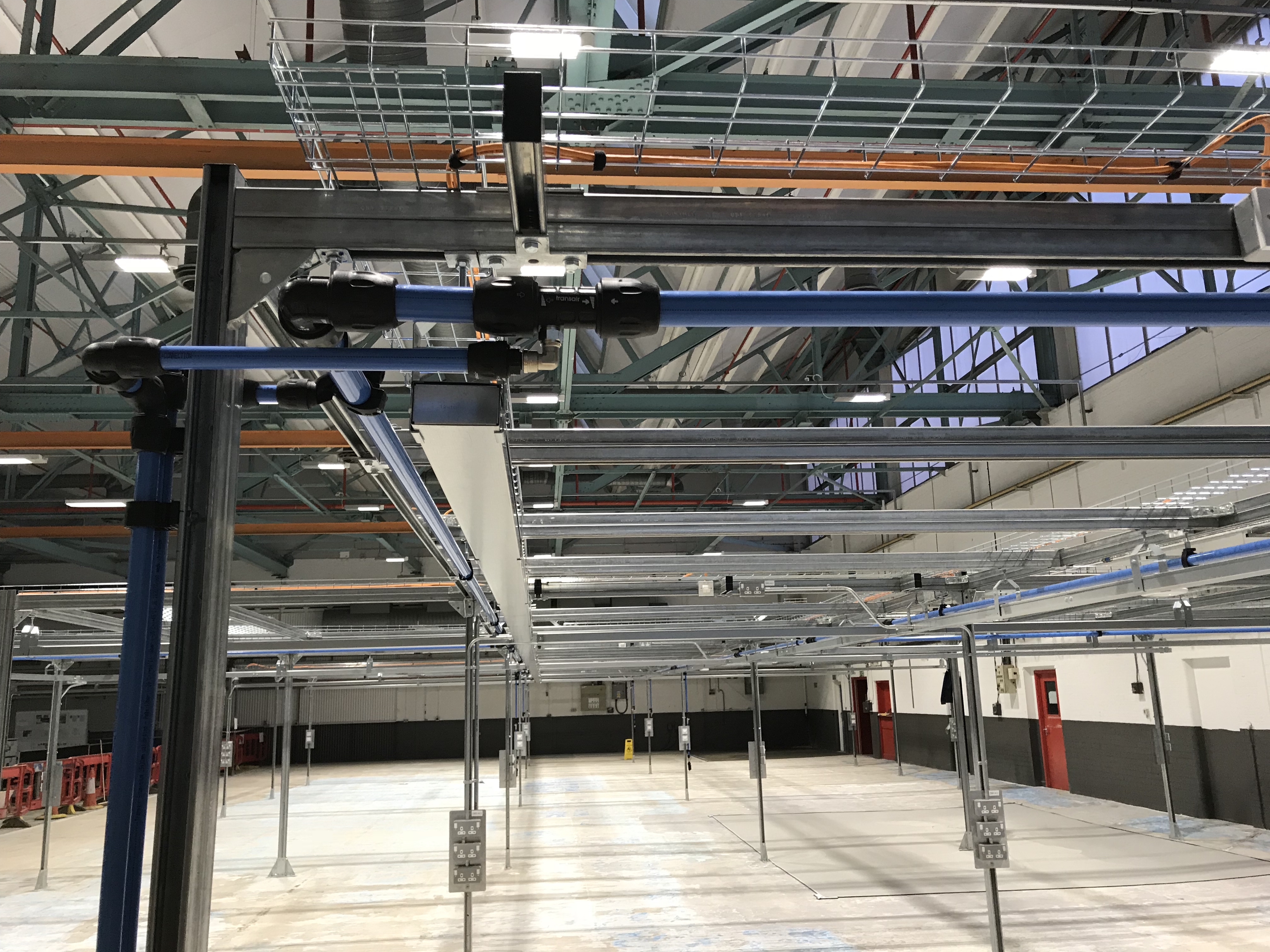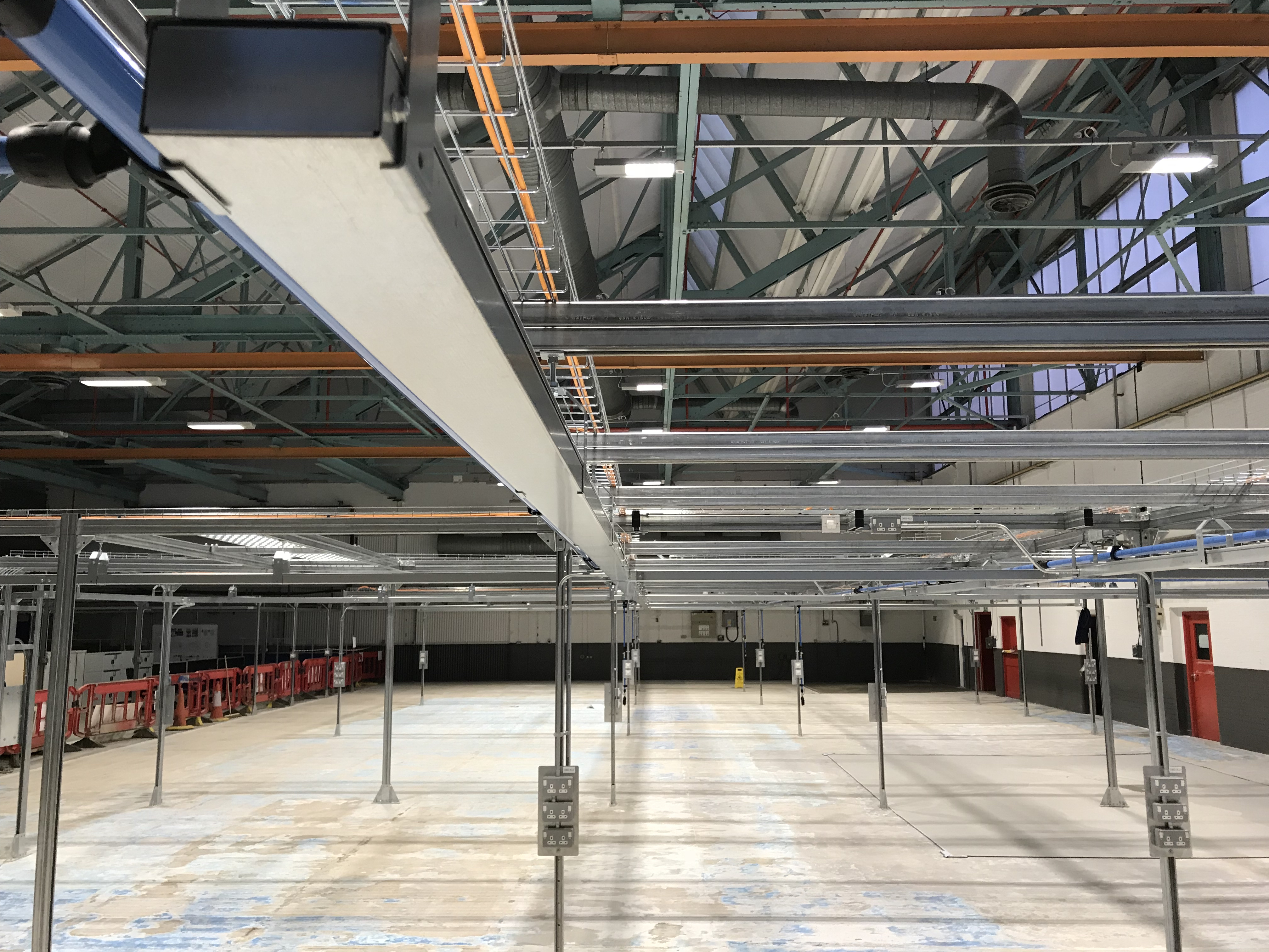 The only challenging part was ensuring the unistrut frame set out was precisely as indicated in the drawings, including heights and positioning of the sockets to meet the clients exacting requirements. The rest is what we do day to day, Unistrut, Cable Basket, Trunking and Conduit installations.
